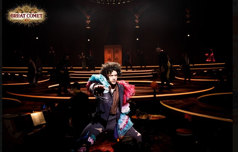 《大彗星》的初始版其实是很“小”的,2012年,《大彗星》首演于纽约一家只能容纳六七十个观众的迷你剧场,当时它被认为是一部小众又奇怪的音乐剧——取材于文学系学生都不一定读完的《战争与和平》,剧名长得离谱,音乐混合俄罗斯民谣和电子合成器,它各方面看着是“非主流”。但这颗小小的彗星非但没有黯淡,它在2014年进入外百老汇,演出场地是一座帐篷剧院,白色帐篷内部装饰成红丝绒包裹的亲密空间,乐手、演员和送酒的服务生都在拥挤的观众群里游走,演出现场同时是热气腾腾的小酒馆派对。《大彗星》的经典唱段、娜塔莎的主题曲《别无他人》,是为了这个“酒馆派对”的版本特别谱写的。
