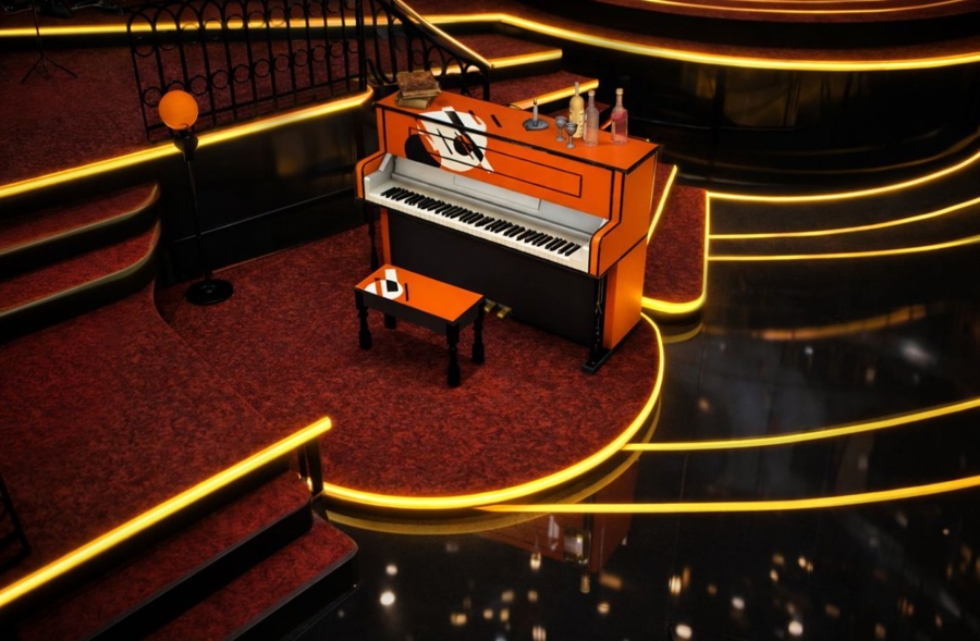 2024年初,上海版《大彗星》在中国音乐剧行业引发震动,这年底,《大彗星》英国版在伦敦市中心、素有“新锐音乐剧摇篮”之称的独立剧院Donmar Warehouse上演。这个版本的视觉风格颠覆之前在百老汇和亚洲各地的演出,舞台风格极简,在黑白主色调中点缀少量红色,中央悬挂可升降吊灯,灯落下时是演员们围坐的中心;悬在半空时在演员头顶形成压迫感。这个看起来冷酷迷幻的版本,把贵族阶层纸醉金迷背后凄清、狼狈的本质暴露在剧场里。