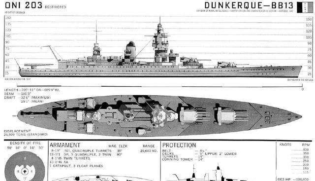 “斯特拉斯堡”号战列舰作为敦刻尔克级二号舰,首舰为“敦刻尔克”号。1934年11月25日,它在船台上铺设龙骨,1936年12月12日正式下水,并于1939年4月24日加入法国海军服役。该舰的设计初衷,是为了有效抗衡德国的“德意志级”装甲舰,如著名的“斯佩伯爵”号,故而特别强调高速性能与强大的火力投射能力。同时,它的设计还需遵循《华盛顿海军条约》的相关限制。
