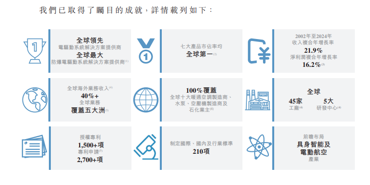 招股书显示,本次募集资金的核心投向:一是扩大产能以及提升生产基础设施的智能化水平、效率及全球覆盖范围;二是提升全球研发实力;三是加强电动航空及机器人组件等新兴领域的投资及业务;四是发展全球销售及服务网络;五是留作一般营运资金以供业务灵活调配。