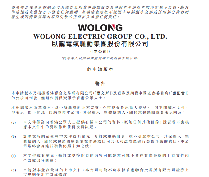 8月13日,卧龙电气驱动集团股份有限公司(下称“卧龙电驱”)向港交所递交招股书,拟挂牌上市。